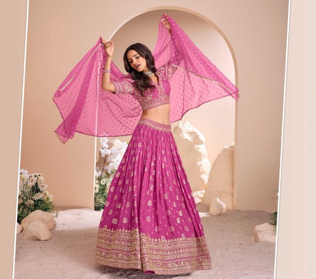 Our designs blend tradition with modern elegance, featuring luxurious fabrics, intricate embroidery, and flawless craftsmanship—all tailored to make your presence shine. From ethereal lehengas to regal silhouettes, every piece is designed to complement your journey through life’s most cherished events.
